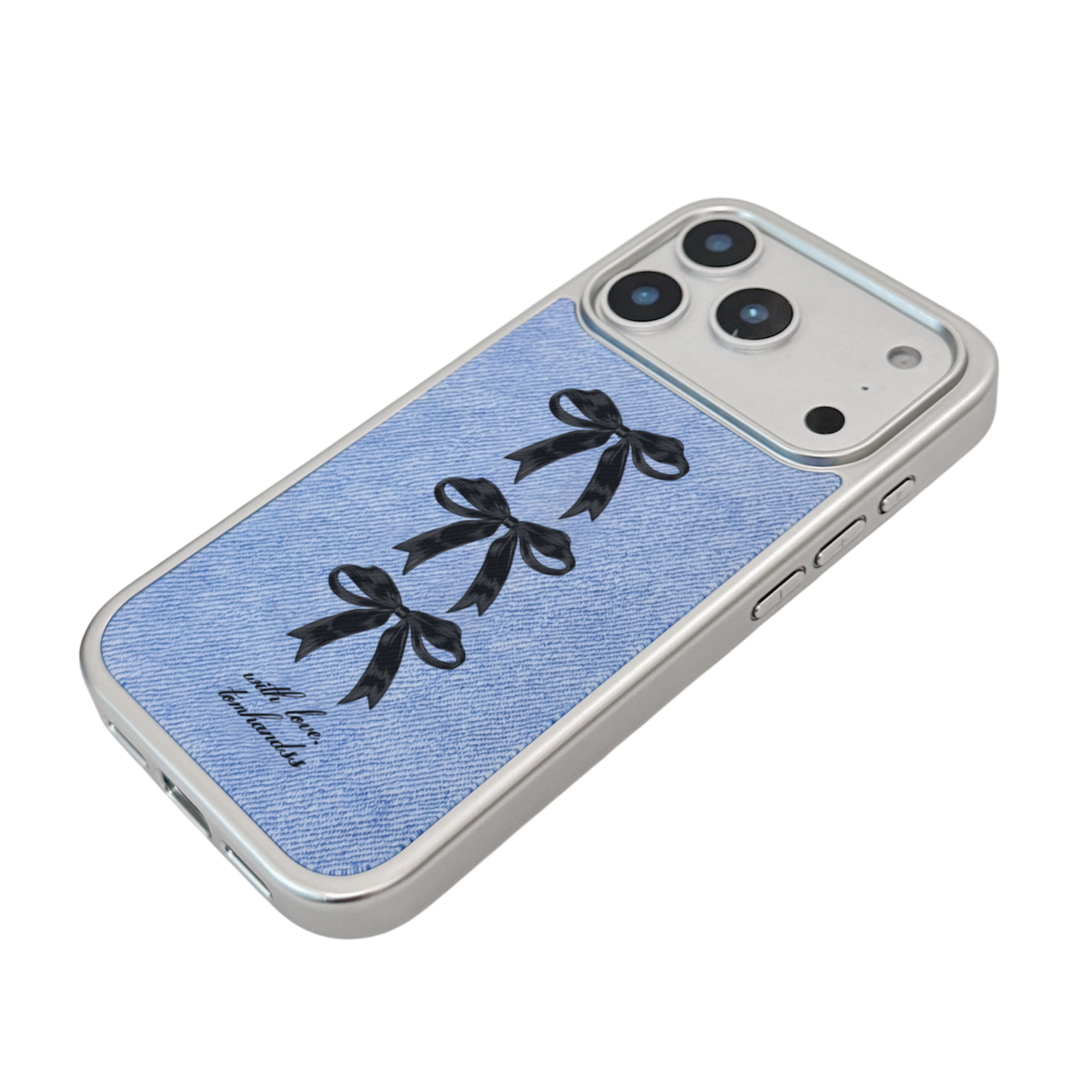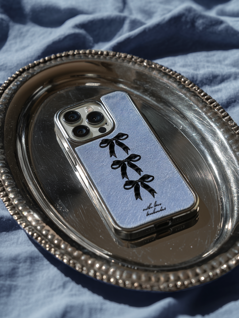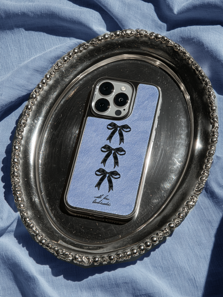 【Light Denim X Little Black Bows】銀框磨砂面MagSafe iPhone Case